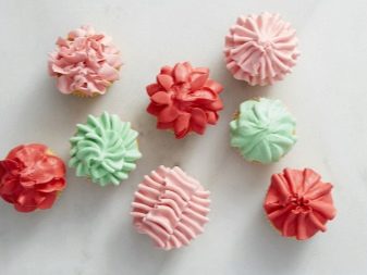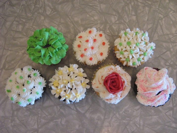 - คัพเค้กที่ตกแต่งด้วยครีมเนยหลากสีแสดงไว้ที่นี่ เครื่องหมายดอกจันถูกกำหนดทิศทางต่าง ๆ และมีร่องชัดเจน ตัวเลือกที่ดีสำหรับวันหยุดของเด็ก ตรงกลางเป็นรุ่นดอกไม้ที่สวยงามที่สร้างขึ้นด้วยรูปลักษณ์แบบเปิดเหมาะสำหรับปาร์ตี้ไก่และการพบปะสังสรรค์ของผู้หญิง ด้านขวามีคัพเค้กราดครีมตกแต่งด้วยหัวฉีดปิด มันกลายเป็นหมวกที่น่าสนใจ ตัวเลือกนี้เหมาะสำหรับวันหยุดใด ๆ