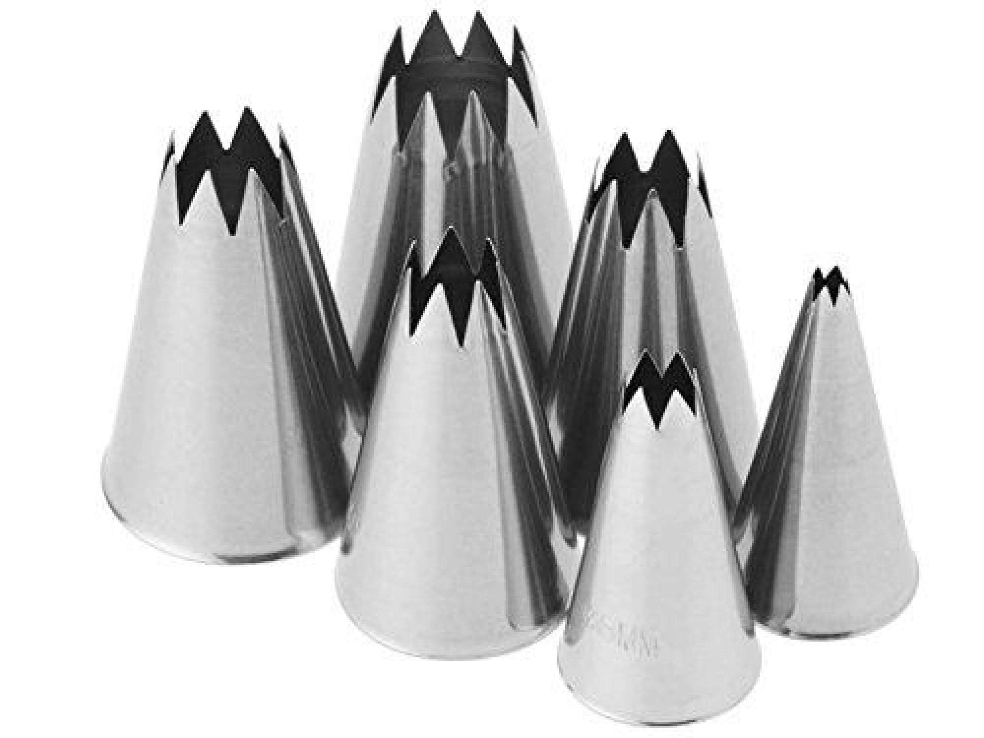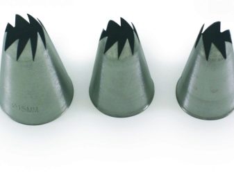 - เปิดดาว หัวฉีดประเภทนี้ช่วยสร้างสัญลักษณ์เวทย์มนตร์บนเค้ก ดาวที่เปิดอยู่มีขนาดเส้นผ่าศูนย์กลางหลายตัว ลูกใหญ่ถูกออกแบบมาเพื่อสร้างครีมเมฆบนคัพเค้กลูกเล็ก ๆ ใช้สำหรับตกแต่งบิสกิตทำขนมหวานโฮมเมดหรือเมอแรงค์ ด้วยความช่วยเหลือของหัวฉีดที่มีเส้นผ่านศูนย์กลางขนาดเล็กคุณสามารถทำคัพเค้กด้วยดอกไม้ดั้งเดิมพวกมันถูกเรียกว่าเป็นก้อน