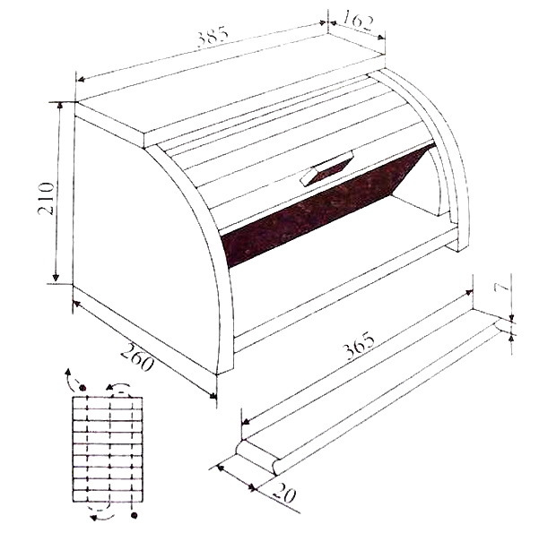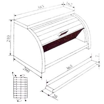 ต้องเลือกใช้ผลิตภัณฑ์ประเภทหนึ่ง มีความจำเป็นต้องวาดไดอะแกรมตามขนาดและรูปวาดเบื้องต้น. ในกรณีนี้มีความจำเป็นต้องเริ่มต้นจากปริมาณของขนมปังและขนาดของก้อน (ก้อน) ที่จะถูกวางไว้ในกล่องขนมปัง สิ่งสำคัญคือเนื้อหาควรอยู่ภายในอย่างอิสระ ได้รับอนุญาตให้สร้างภาพวาดได้ทันทีบนต้นไม้หรือวัสดุอื่น ๆ