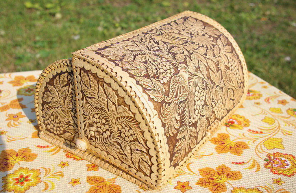 ในฐานะที่เป็นวัสดุมันอาจจะเป็นไม้, ไม้อัด, เปลือกไม้เบิร์ช, ไม้ไผ่ ช่างฝีมือสร้างผลงานชิ้นเอกของพวกเขาจากกระดาษแข็งผ้าฝ้ายดินหนังสือพิมพ์จากขวดพลาสติก ตะกร้าขนมปังที่ทำจากไม้และเปลือกไม้เบิร์ชเป็นที่แพร่หลายมากที่สุดและกล่องเครื่องจักสานขนาดเล็กที่ทำจากหวายก็เป็นที่นิยมเช่นกัน
