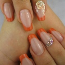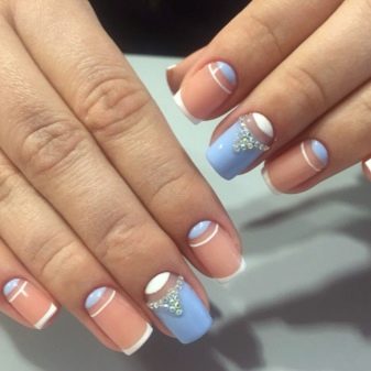 ทำเล็บแบบฝรั่งเศสในโทนสีพีชจะเป็นฐานที่ยอดเยี่ยมสำหรับการสร้างการตกแต่งที่มีรูปแบบใด ๆ นอกจากนี้พีชอ่อนยังประสบความสำเร็จไม่เพียง แต่รวมเข้ากับช่วงสีอบอุ่นทั้งหมด แต่ยังรวมถึงเฉดสีพาสเทลที่เย็น ดังนั้นการผสมที่ดีจะได้รับจากตัวเลือกการตกแต่งสีฟ้าและโลหะ