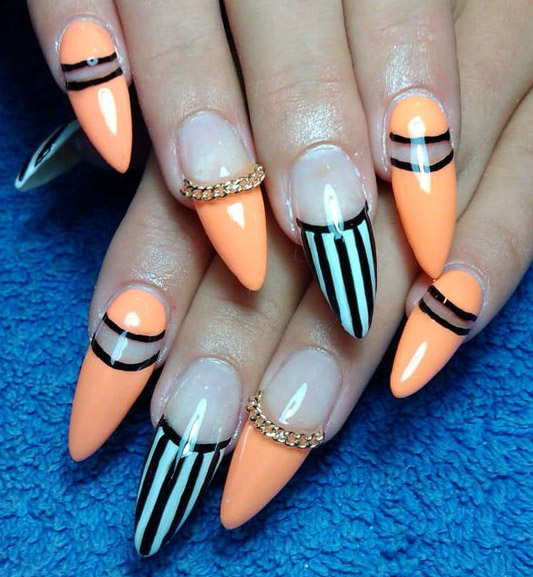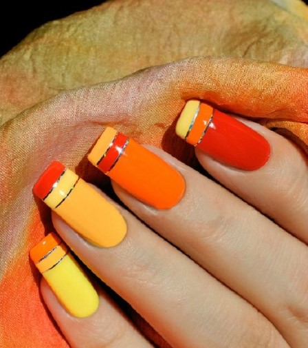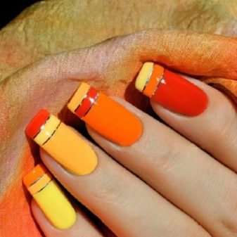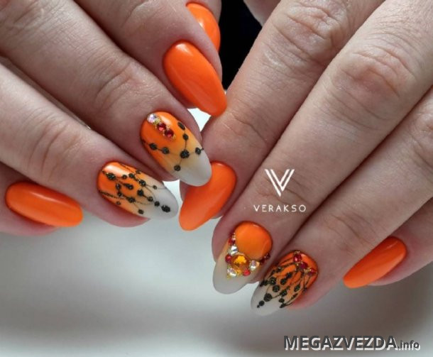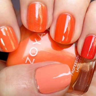 โทนสีส้มทั้งสามนี้ให้ตัวเลือกการออกแบบเล็บมากมายสำหรับทุกโอกาสและสไตล์ที่แตกต่างของเสื้อผ้า ตัวเลือกใดก็ได้ที่เลือก: ดินเผาปะการังหรือลูกพีชจะนำบันทึกของความอบอุ่นและอารมณ์ดีในภาพ