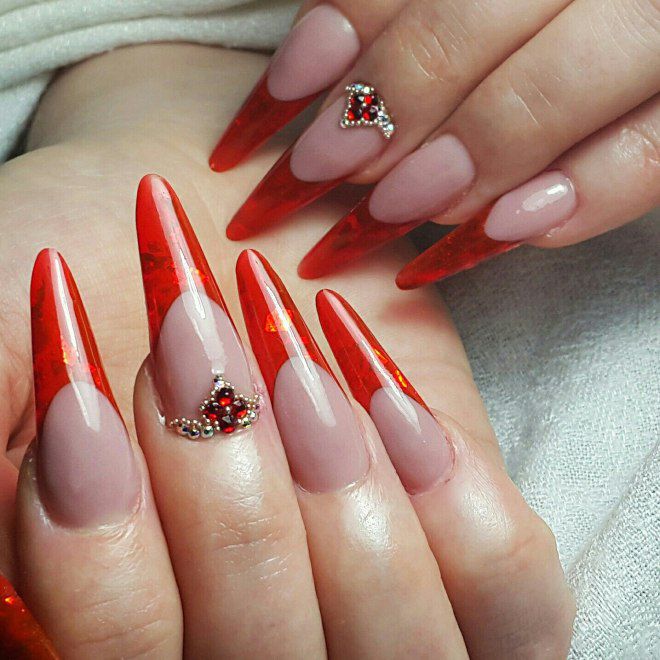 ทำเล็บมือแบบฝรั่งเศสโดยเฉพาะอย่างยิ่งของเสียงนี้ดูบนเล็บยาวในรูปแบบของจุดสูงสุด