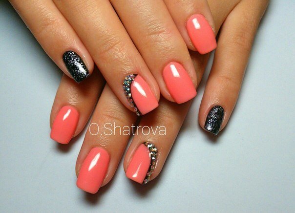 สีของปะการังนั้นเข้ากันได้ดีกับสีขาวและสีทอง สีดำสีเงินและสีฟ้าเหมาะสำหรับสร้างความคมชัด หากคุณต้องการสร้างเวอร์ชั่นที่สว่างกว่าคุณสามารถเพิ่ม rhinestones ประกายและฟอยล์บนเล็บหนึ่งหรือหลายตัว