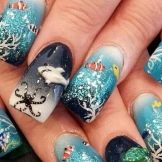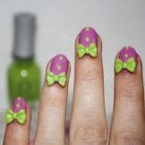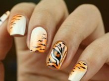 สัตว์ "สวม" บนเล็บ - ความคิดที่สนุกมาก คุณสามารถเลือกหมีน่ารักกบวัวและตัวแทนอื่น ๆ ของขาทั้งสี่ได้ ตามกฎแล้วภาพดังกล่าวเป็นที่ต้องการของหญิงสาวดังนั้นสัตว์จึงขึ้นรูปด้วยสีที่ค่อนข้างสดใส ผู้หญิงที่มีประสบการณ์สามารถเลือกการออกแบบที่เลียนแบบผิวหนังสัตว์เลื้อยคลานผิวหนังสัตว์และหางนกยูง