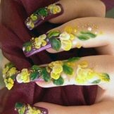 การทำดอกดาวเรืองปริมาตร - นี่คือตัวเลือกที่เหมาะสำหรับการออกทุกวันและเคร่งขรึม การทำเล็บนี้เหมาะสำหรับสาว ๆ ทุกวัย คุณสามารถตกแต่งเล็บทั้งหมดหรือมุ่งเน้นที่หนึ่งหรือสอง ดอกไม้อาจมีขนาดเล็กหรือใหญ่ตราบใดที่เคลือบซึ่งเป็นพื้นฐานสำหรับ "การเติบโต" ของพวกเขาจะแตกต่างกัน