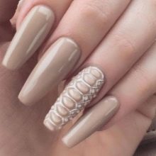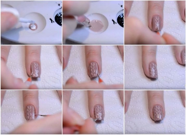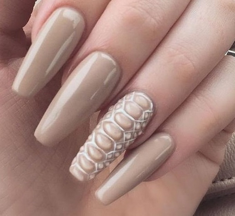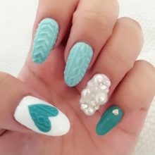 การทำเล็บด้วยเอฟเฟกต์ 3D เลียนแบบผลิตภัณฑ์ที่ถักหรือขนจะดูฉลาด การถักแบบธรรมดาด้วย“ braids” หรือเครื่องประดับ“ ฤดูหนาว” แบบดั้งเดิมของสแกนดิเนเวียสามารถใช้เป็นลวดลายถักได้