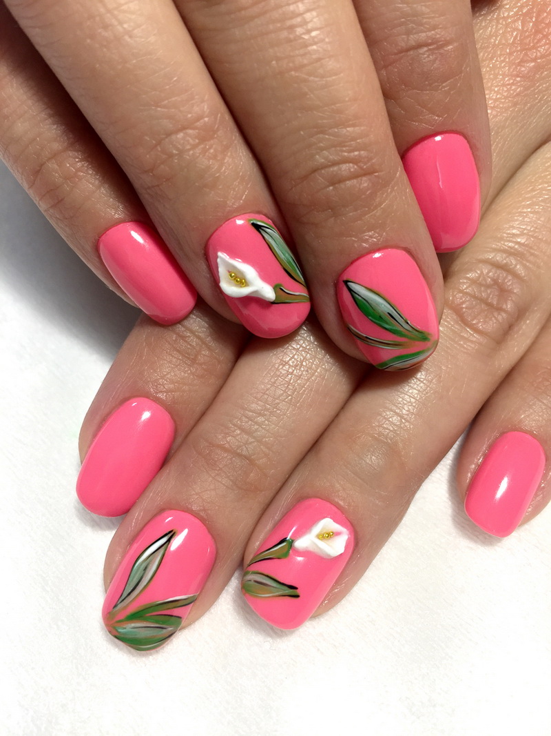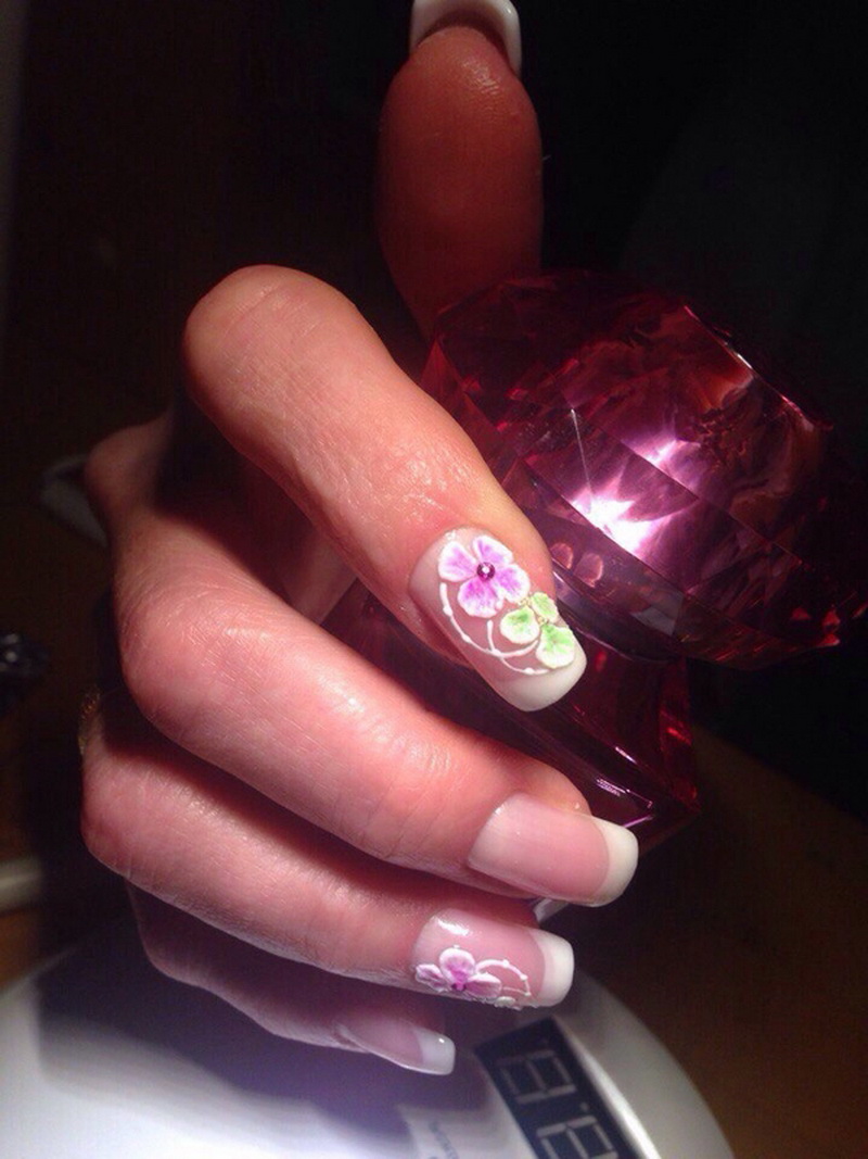 เล็บถูกปกคลุมไปด้วยฐาน, เจลขัดสีจะถูกนำไปใช้ด้านบนของมัน จากนั้นนำไปใช้กับด้านบนและชั้นเหนียวจะถูกลบออก ด้วยความช่วยเหลือของจุดเจลจะถูกคัดเลือก ด้วยความช่วยเหลือของนิ้วมือจากมวลทำให้ลูกบอลถูกตรึงและตรึงบนเล็บขวาในสถานที่ที่วางแผนขั้นสุดท้ายขององค์ประกอบนี้ หากคุณวางแผนที่จะสร้างดอกตูมแปรงควรทำเครื่องหมายที่กึ่งกลางของหัวดอกไม้กดลงไปที่มวลเล็กน้อย ในเวลาเดียวกันกลีบจะเกิดขึ้น: จากหยดหนึ่งของเจล - หนึ่งกลีบ องค์ประกอบทั้งหมดจะถูกทำให้แห้งภายใต้หลอด UV หรือหลอดไฟ LED การทำให้แห้งโดยใช้อุปกรณ์แรกจะใช้เวลา 2 นาทีและในวินาที - เพียง 30 วินาที