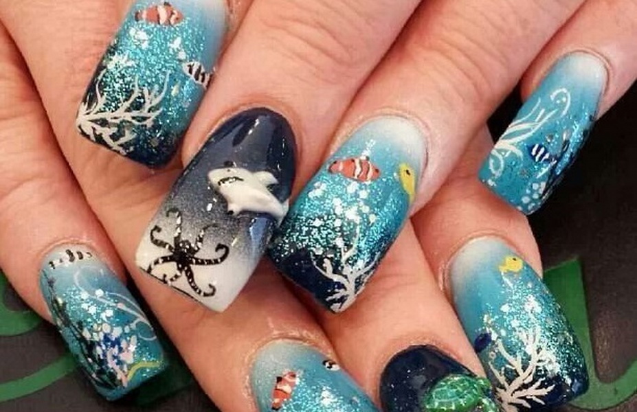 การทำเล็บสีชมพูอ่อน ๆ ที่มีก้อนกรวดเทียมติดอยู่บนนิ้วนางจะเหมาะสมแม้ในการแต่งกายอย่างเคร่งครัด อีกทางเลือกหนึ่งสำหรับการทำเล็บที่เหมาะสำหรับพนักงานออฟฟิศคือสีของดอกดาวเรืองสีนู้ดการตกแต่งด้วยนิ้วกลางด้วยผงและวัตถุที่ไม่ระบุตัวตน - ดอกกุหลาบทำจากผงบนพื้นผิวมัน ทำเล็บ 3 มิติพร้อมภาพระดับความลึกของทะเลและผู้พักอาศัยของพวกเขาด้วยความสมจริงช่วยให้ระลึกถึงช่วงเวลาวันหยุดได้อย่างเต็มตา การตกแต่งภายใต้ผิวหนังสัตว์เลื้อยคลานดูสมบูรณ์และมีสถานะ เพื่อไม่ให้เล็บเกินพิกัดด้วยการออกแบบดังกล่าวก็เพียงพอที่จะสร้างผลกระทบที่ผิดปกติในหนึ่งหรือสอง