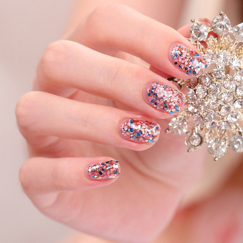 เมื่อสร้างเล็บทำเล็บตามปริมาตรคุณสามารถใช้น้ำยาเคลือบเงาใด ๆ ก็ได้ แต่ควรใช้สีผสมที่ซับซ้อนและสีพาสเทลอ่อน ๆ นอกจากนี้ยังใช้หินเทียม, แวววาว, ระยับ, เคล็ดลับ, ลูกปัด, ดาว, rhinestones, เปลือกหอย, ดอกไม้, ภาพวาดของดินโพลิเมอร์และของตกแต่งอื่น ๆ การทำเล็บตามปริมาตรจะดูดีสำหรับเล็บที่ยาวและสั้น
