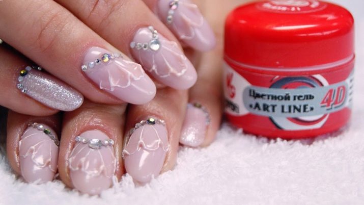 มีเจลเพียงสองประเภทที่ใช้ในการสร้างเล็บจำนวนมาก: 3D gel และ 4D gel อย่างแรกคือมวลพลาสติกที่เป็นของแข็งซึ่งง่ายต่อการใช้งานคุณสามารถสร้างมันขึ้นมาใหม่ได้ทุกรูปแบบ สำหรับการทำงานคุณต้องใช้แปรงที่มีขนแปรงค่อนข้างแข็ง