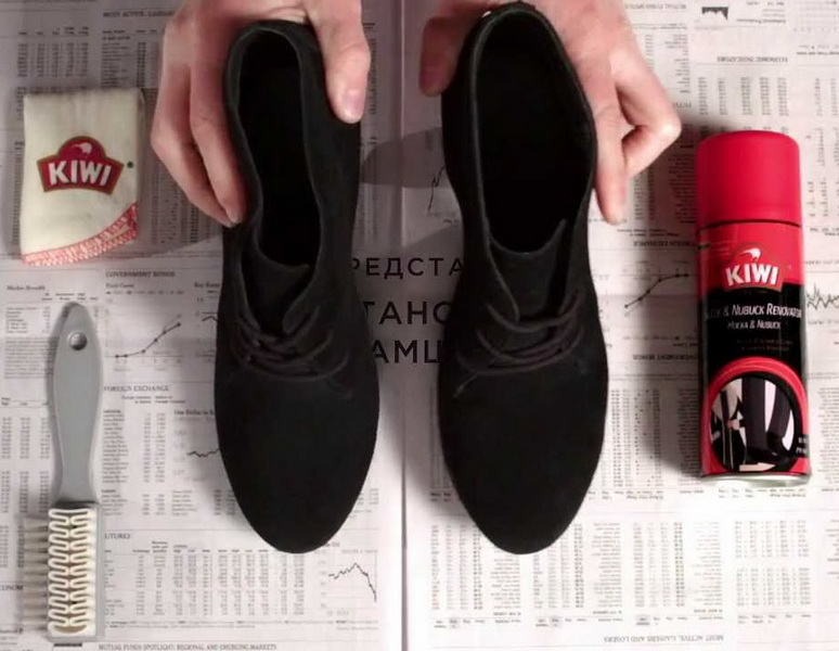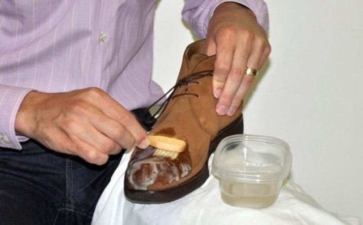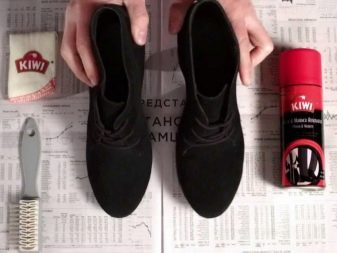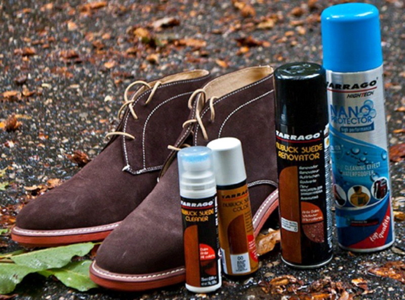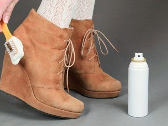 การทำความสะอาดรองเท้าหนังกลับนั้นไม่เพียง แต่ให้ความชุ่มชื่นและกันน้ำ แต่ยังให้ความรู้สึกสดชื่นด้วยการดูแลเพื่อให้รองเท้ามีลักษณะที่น่าดึงดูด สำหรับจุดประสงค์เหล่านี้มีละอองพิเศษครีมหรือสูตรของเหลวที่มีสีคล้ายกับแผ่นหนังกลับสีที่หลากหลาย