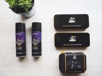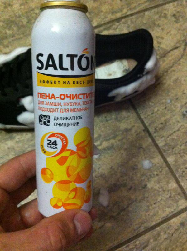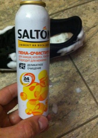 องค์ประกอบดังกล่าวช่วยให้ขจัดคราบและเครื่องหมายบนรองเท้าจากเกลือและสารเคมีบนท้องถนนนอกจากนี้องค์ประกอบดังกล่าวจะคืนค่าวัสดุให้คุณสมบัติกันน้ำและรับมือกับมลพิษประเภทอื่นได้อย่างง่ายดาย แบรนด์ยอดนิยม ได้แก่ สเปรย์“ Davidik” หรือ“ Silver Premium 3 in 1”