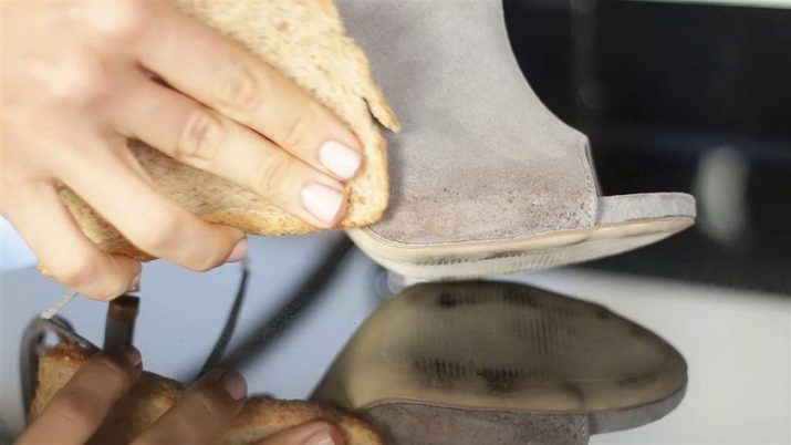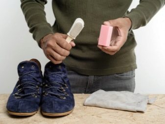 นอกจากนี้เพื่อช่วยดูแลรองเท้าที่ทำจากหนังกลับคุณสามารถซื้อฟองน้ำและยางลบทุกชนิดซึ่งแนะนำให้ใช้ทุกวันหลังจากใส่รองเท้ารองเท้าหรือรองเท้าผ้าใบ สาระสำคัญของการกำจัดคราบและคราบนั้นอยู่ในวิธีการทำความสะอาดแบบแห้งเมื่อพื้นที่บนวัสดุที่ชำรุดสกปรกถูกถูด้วยยางลบหรือฟองน้ำเพื่อกำจัดวัสดุที่กินในกอง