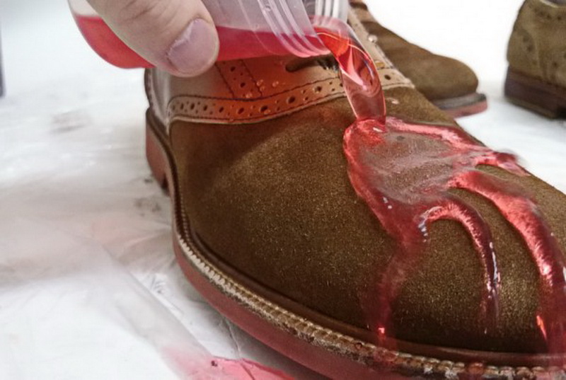 มันเป็นสิ่งจำเป็นที่จะทำให้หนังกลับเปียกที่อุณหภูมิห้องแห้งและไม่ควรวางไว้ใกล้กับอุปกรณ์ทำความร้อนเนื่องจากมีความเสี่ยงสูงที่รองเท้าจะเสียรูปร่าง