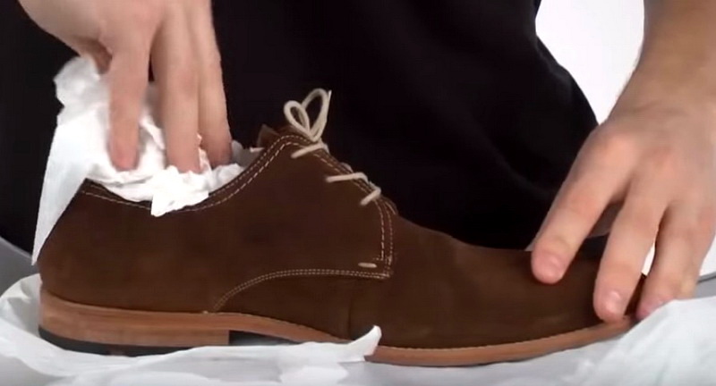 ก่อนอื่นคุณต้องทำให้รองเท้าเปียกรองเท้าหรือรองเท้าผ้าใบแห้ง: สำหรับสิ่งนี้ด้านนอกของรองเท้าควรเปียกด้วยผ้าขี้ริ้วไร้ขุยแห้งและด้านในใส่หนังสือพิมพ์ม้วนยู่สองสามม้วนเพื่อเติมเต็มพื้นที่ให้มากที่สุดเท่าที่จะทำได้โดยไม่คำนึงว่าหนังเทียมหรือหนังเทียมจากธรรมชาติจะใช้ทำรองเท้า