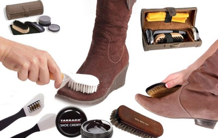 เมื่อสิ่งสกปรกแห้งสนิทบนพื้นดินก็สามารถลบออกได้ด้วยแปรง ตามกฎแล้วอุปกรณ์เสริมที่มีประโยชน์นั้นขายในร้านขายรองเท้าพร้อมผลิตภัณฑ์และผลิตภัณฑ์ดูแลมืออาชีพ นอกจากนี้คุณยังสามารถซื้อได้ที่ร้านฮาร์ดแวร์ทั่วไปหรือในซูเปอร์มาร์เก็ตในแผนกเฉพาะที่จำหน่ายผลิตภัณฑ์รองเท้า