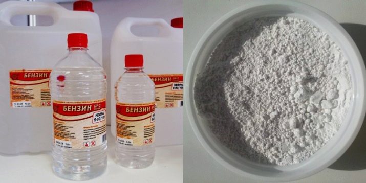 กระบวนการทำความสะอาดด้วยเครื่องมือดังกล่าวเกี่ยวข้องกับการบำบัดไซต์ที่มีมลภาวะของหนังนิ่มด้วยน้ำมันเบนซินหลังจากนั้นพื้นที่จะต้องเป็นผงที่มีแป้งฝุ่นชั้นใหญ่และรองเท้าซ้ายในสภาพนี้เป็นเวลา 2-3 ชั่วโมงแล้วทำความสะอาดวัสดุด้วยแปรงแข็ง