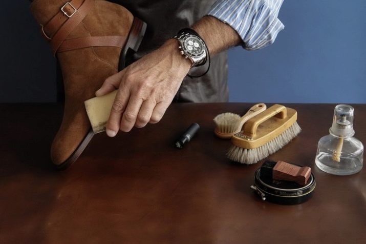 เมื่อคำนึงถึงประเด็นข้างต้นทั้งหมดและการทำรองเท้าที่ทำจากหนังกลับคุณต้องมีความคิดที่ชัดเจนว่าควรใช้เครื่องมือและอุปกรณ์เสริมอะไรบ้างในการทำความสะอาดและดูแลเธอที่บ้าน
