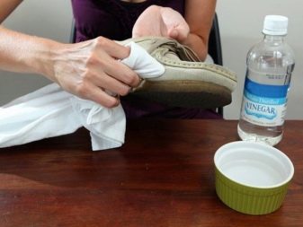 - หากต้องการลบร่องรอยเลี่ยนคุณจะต้องแก้ปัญหาน้ำและน้ำส้มสายชู (อัตราส่วน 3: 1) ใช้ส่วนผสมนี้ควรระมัดระวังหล่อลื่นบริเวณที่มันวาวเท่านั้น ไม่มีใครรู้ว่าหนังนิ่มจะตอบสนองต่อน้ำส้มสายชูได้อย่างไรเพื่อไม่ให้รองเท้าเสียคุณต้องพยายามใช้น้ำส้มสายชูในพื้นที่เล็ก ๆ ก่อน หากวัสดุอยู่ในลำดับที่คุณสามารถใช้การแก้ปัญหาได้อย่างปลอดภัย