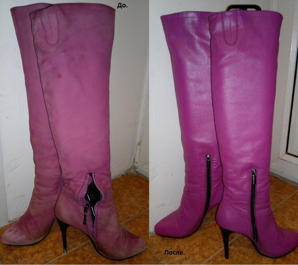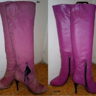 รองเท้าดังกล่าวต้องการการดูแลเป็นพิเศษ รองเท้าบู๊ทหุ้มด้วยฝุ่น ในบางพื้นที่เกิดรอยถลอกอย่างรุนแรง เพื่อให้รองเท้าหนังกลับมีเสน่ห์พวกเขาต้องย้อมสี ที่บ้านมันค่อนข้างง่าย ก่อนอื่นคุณต้องซื้อในร้านค้าสเปรย์สีพิเศษที่มีสีเฉพาะ พื้นผิวที่จะทำการย้อมจะถูกห่อหุ้มด้วยพลาสติก งานจะต้องทำด้วยถุงมือยาง
