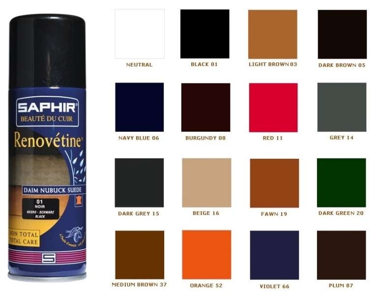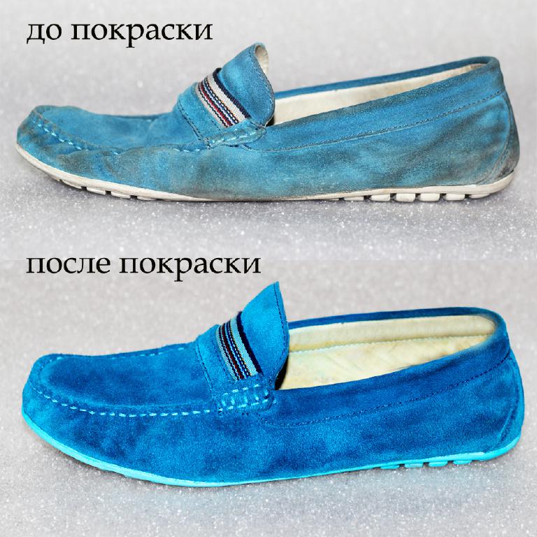 สีจะถูกเลือกตามโครงสร้างหนังกลับ หากต้องการทาสีรองเท้าดังกล่าวในสีที่แตกต่างอย่างสิ้นเชิงผลิตภัณฑ์ของเหลวต่าง ๆ จะทำ รองเท้าฤดูร้อน (รองเท้าแตะ, รองเท้า) ทำจากหนังกลับซึ่งมีงีบสั้น ๆ กระป๋องสเปรย์เหมาะที่สุดสำหรับการทาสี เม็ดสีจะวางราบกับพื้นผิวของหนังกลับ