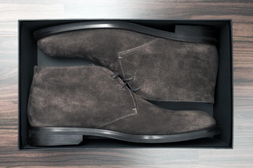 - รองเท้าหนังกลับควรเก็บไว้ในถุงผ้าในกล่องพิเศษ มันจะปกป้องวัสดุจากความชื้นส่วนเกินป้องกันหนังนิ่มจากฝุ่น หนังกลับที่ซ่อนอยู่ในกล่องจะรักษาโครงสร้างของมันไว้ สีของมันจะยังคงอิ่มตัวและสดใส