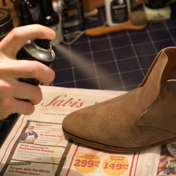 พนักงานต้อนรับทุกคนสามารถระบายสีรองเท้าหนังกลับที่บ้านได้ มันสำคัญมากที่พื้นผิวไม่มีคราบและสิ่งสกปรก