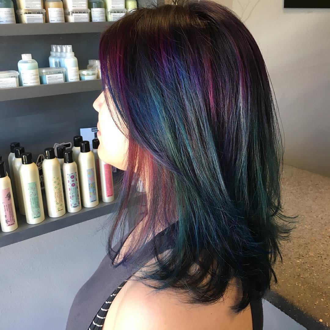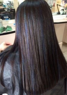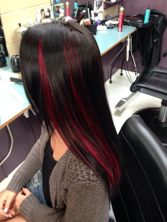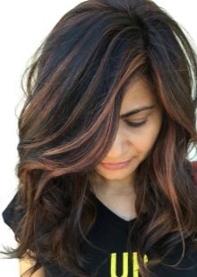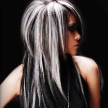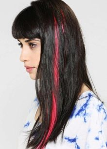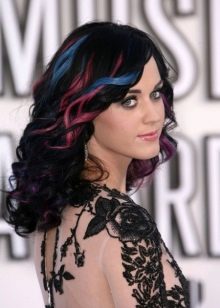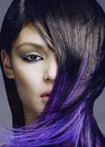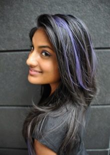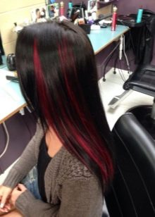 สีขาวสว่างสีแดงหรือสีอื่น ๆ บนเส้นผมสีดำดูสดและเป็นต้นฉบับ ความแตกต่างของการไฮไลต์นี้ช่วยให้คุณสามารถเปลี่ยนภาพได้โดยไม่ต้องเปลี่ยนสีอย่างรุนแรงให้การสร้างเอฟเฟกต์ที่ผิดปกติ แสงและสีม่วง, ชมพูและสีแดงในเฉดสีทรงผมของอีกาวิงสร้างแสงจ้าและความเล่นเพิ่มปริมาณและความเงางาม ไฮไลท์ดั้งเดิมของผมสีดำนั้นเป็นเทรนด์ที่ยาวนาน มันถูกอ้างสิทธิ์โดย brunettes ธรรมชาติและผู้หญิงที่เลือกสีนี้สำหรับตัวเองแม้จะมีข้อมูลธรรมชาติ