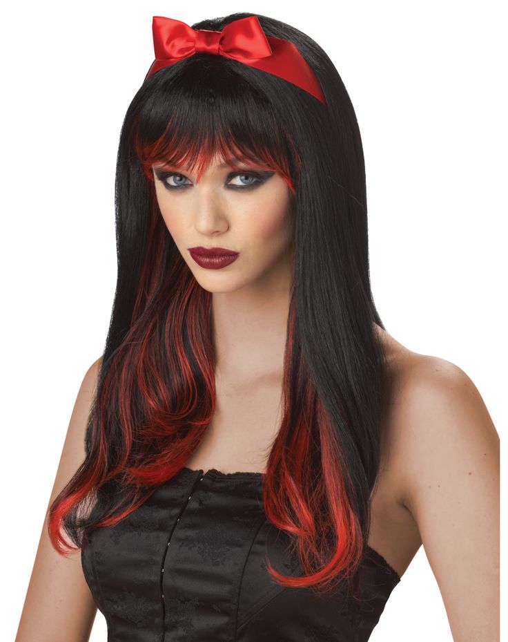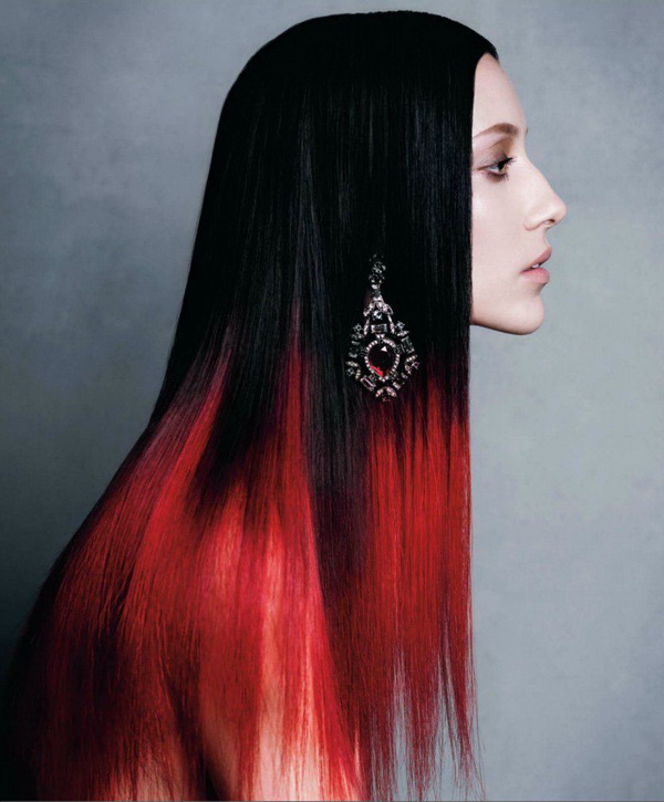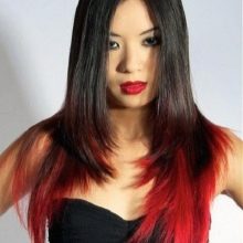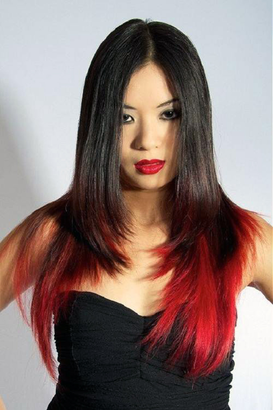 - เส้นสีแดงเพลิงร่วมกับผมสีดำดูงดงามในสาว ๆ ที่มีลักษณะสดใส