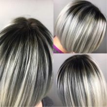 การเน้นที่ผมสีดำสามารถทำได้ในเทคนิคต่าง ๆ ในบรรดาวิธีการแก้ปัญหาที่ดีที่สุดคือสีคลาสสิกของเส้นตามความยาวทั้งหมด ควรให้ความพึงพอใจ ความกว้างไม่เกิน 5 มม.: เธอดูเป็นธรรมชาติมากขึ้น ไฮไลท์ขนาดเล็กที่มีเฉดสีอ่อนทำให้ผมสีเทาเพิ่มปริมาณให้กับทรงผม เทคนิคโซนช่วยให้คุณสามารถเลือกเฉพาะเส้นบนจากราก - ส่วนล่างยังคงสีธรรมชาติ
