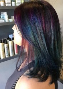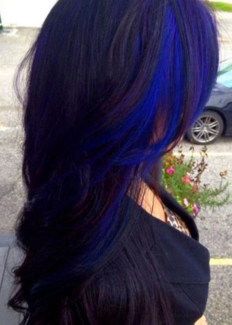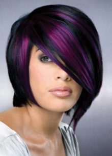 การเลือกสีมีความสำคัญอย่างยิ่งสำหรับการได้มาซึ่งความเปรียบต่างที่สวยงาม วิธีแก้ปัญหาที่ชัดเจนที่สุดสำหรับผมสีดำคือรอยเปื้อนขนาดเล็กหรือแคบในรูปแบบของไฮไลท์หรือเส้นเดี่ยว เจ้าของปีกสีธรรมชาติที่ยังไม่ได้ทาสีของนกกาสามารถใช้เฉดสีที่เย็นสบายทั้งหมดสร้างสำเนียงลูกเกดสีม่วงสีชมพู