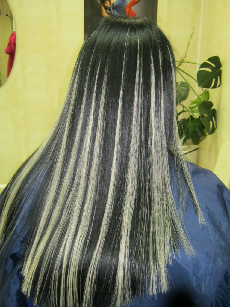ไฮไลท์ใด ๆ กับผมสีดำหมายถึง การฟอกสีที่เลือกล่วงหน้า. มันทำด้วยการใช้องค์ประกอบที่ให้การฟอกสีสำหรับ 6-8 เสียง หากก่อนหน้านี้ผมได้รับความเสียหายมันจะนำไปสู่การบาดเจ็บมากขึ้น ในการปรากฏตัวของอาการแพ้บนหนังศีรษะ, แผลเปิด, มันคุ้มค่าก่อนการรักษาหรือเลือกเทคนิคการสร้างเส้นใยที่ไม่ส่งผลกระทบต่อพื้นที่ราก การทำงานกับสารประกอบทางเคมีใด ๆ จะทำในถุงมือป้องกันเสื้อผ้าที่เหมาะสม