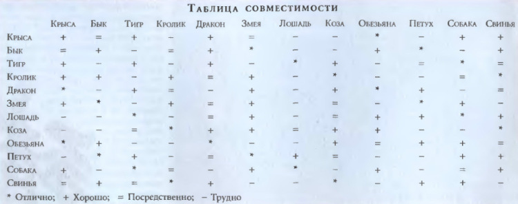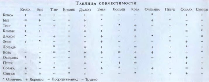 มีตารางสัญญาณความเข้ากันได้บางอย่างซึ่งสร้างขึ้นโดยนักโหราศาสตร์มันสามารถพบได้บนอินเทอร์เน็ต ในการตรวจสอบว่าสัญญาณมีความเหมาะสมสำหรับแต่ละอื่น ๆ คุณต้องดูเซลล์ที่พวกเขาตัดกัน หมายเลขที่ป้อนในเซลล์จะระบุระดับความเข้ากันได้