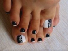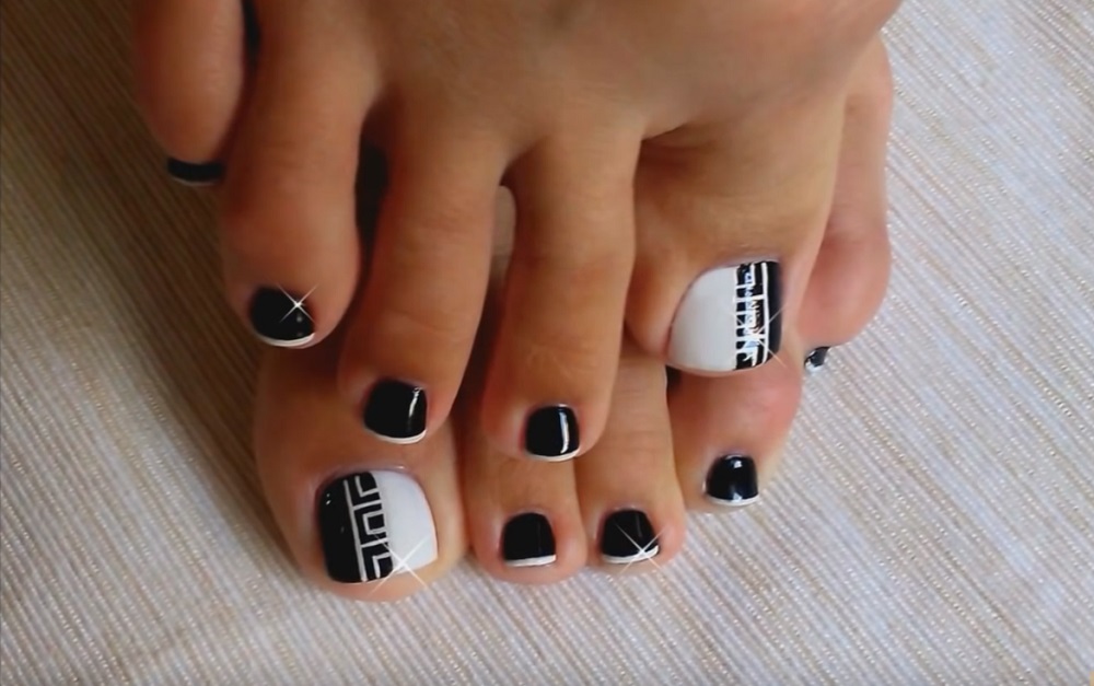 จานสีดำและสีขาวเป็นคลาสสิกคงที่ ทำเล็บเท้านี้เหมาะสำหรับโอกาสอันศักดิ์สิทธิ์และการประชุมทางธุรกิจมันดูดีในชีวิตประจำวันโดยไม่คำนึงถึงภาพที่ได้รับการคัดเลือกโดยผู้หญิง
