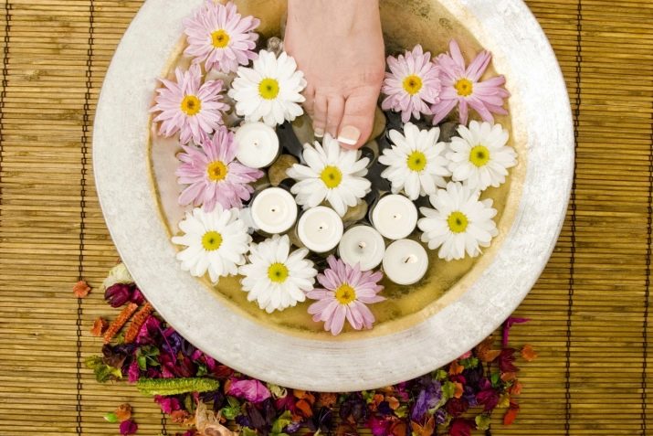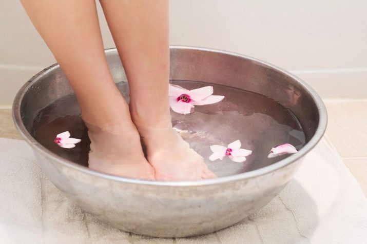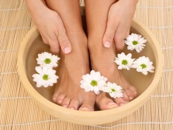 หากเท้าของคุณดีแล้วคุณก็สามารถอาบน้ำที่ผ่อนคลายด้วยดาวเรืองหรือดอกคาโมไมล์ พวกเขามีผลเพิ่มความชุ่มชื้น เครื่องมือนี้เหมาะสำหรับผู้ที่ต้องใส่รองเท้าแคบหรือรองเท้าส้นสูง การรักษาแผลขนาดเล็กและรอยแตกบนส้นเท้าเกิดขึ้นเร็วขึ้นหลังจากผ่านการอาบน้ำเช่นนี้
