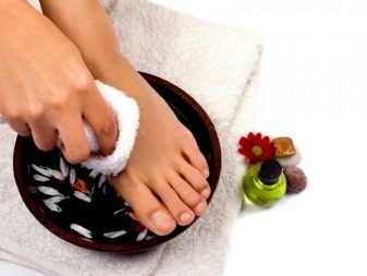 การทำเล็บเท้าที่บ้านนั้นคุ้มค่ากับการอาบน้ำอุ่นเสมอ มันจะช่วยให้ผิว keratinized อบไอน้ำนุ่มและอำนวยความสะดวกในกระบวนการกำจัดผิว สมุนไพรน้ำมันและแม้กระทั่งเกลือที่มีสารเติมแต่งมักจะถูกเติมลงในน้ำเพื่อบำรุงผิวด้วยองค์ประกอบที่มีประโยชน์และเพื่อปรับปรุงสภาพของมัน ห้องอาบน้ำสามารถแบ่งออกเป็นกลุ่มต่อไปนี้: