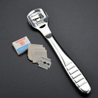 ขึ้นอยู่กับสภาพของส้นเท้ามันเป็นสิ่งจำเป็นในการเลือกเครื่องมือสำหรับการประมวลผลของพวกเขา เมื่อชั้นผิวที่ถูกทำให้เป็นชั้นหนากลายเป็นดีที่สุดควรใช้เครื่องขูดพิเศษหรือเครื่องจักร