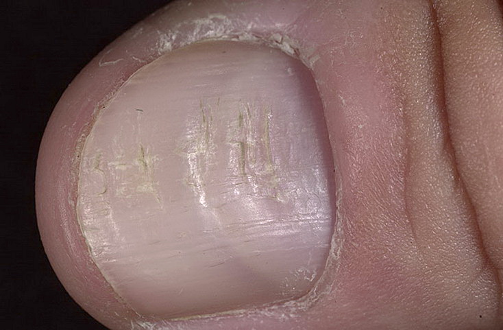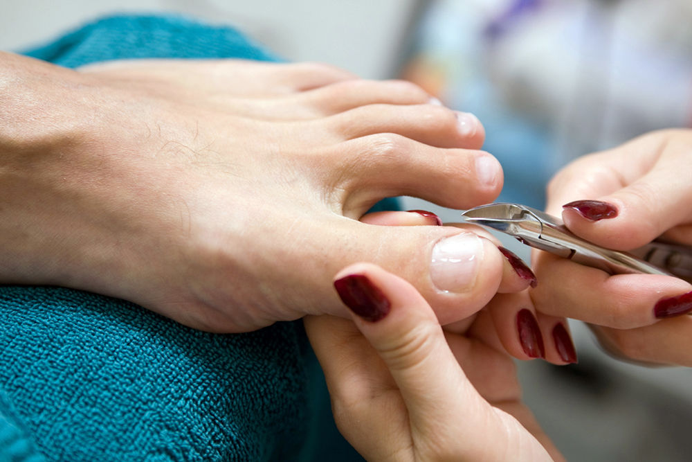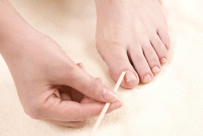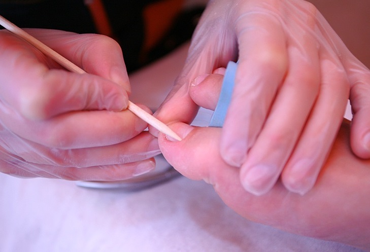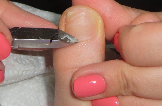 ขอบของเล็บเท้านั้นทำขึ้นเป็นรูปสี่เหลี่ยมวิธีเดียวที่จะหลีกเลี่ยงการซึมเข้าไปในผิวหนัง ควรล้างแผ่นด้วยน้ำยาฆ่าเชื้อ