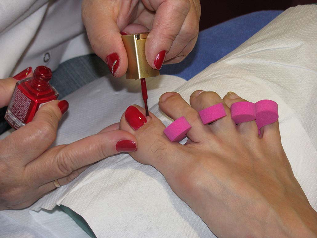 การทำเล็บเท้าใด ๆ ควรทำให้เสร็จโดยใช้ครีมน้ำยาฆ่าเชื้อหรือครีมเพิ่มความชุ่มชื้น ถัดไปคุณจะต้องดูแลอย่างเหมาะสม - ด้วยผิวแห้งคุณจะต้องทาครีมบนผิวในเวลากลางคืนและสวมถุงเท้าพิเศษ ของชำร่วยมีประโยชน์ในการขัดผิวหน้า แต่ไม่ควรใช้ในทางที่ผิด