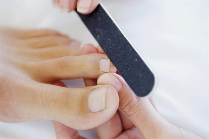 ทำงานอย่างระมัดระวังกับแผ่นเล็บเพื่อไม่ให้เกิดความเสียหายโดยใช้เครื่องมือที่จำเป็น ผู้เชี่ยวชาญด้านการกีดกันการใช้ไฟล์ที่หยาบในระหว่างการทำเล็บเท้าโดยเฉพาะอย่างยิ่งไฟล์ที่คล้ายกับกระดาษทราย