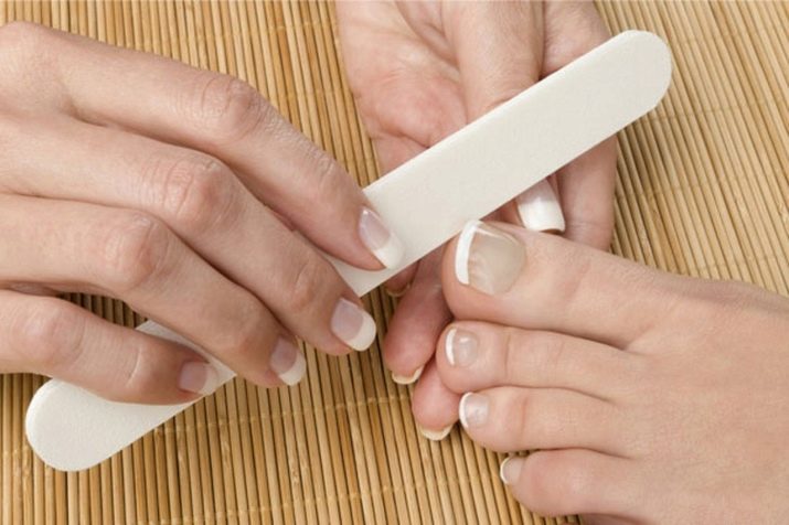 มีเทคโนโลยีพิเศษในการยื่นซึ่งเกี่ยวข้องกับการเคลื่อนไหวในทิศทางเดียว มันไม่ยากที่จะให้รูปร่างที่ถูกต้องกับจานผู้หญิงทุกคนจะสามารถรับมือกับภารกิจนี้ได้ แต่คุณไม่ควรทดลองด้วยเท้าของคุณ หากคุณเปลี่ยนมันเร็ว ๆ นี้เล็บจะเติบโตเป็นผิวหนังและคุณจะต้องการคำแนะนำจากผู้เชี่ยวชาญ หากปัญหานี้ปรากฏขึ้นแล้วขาจะต้องนึ่งในสารละลายโซดาและเกลือ