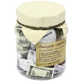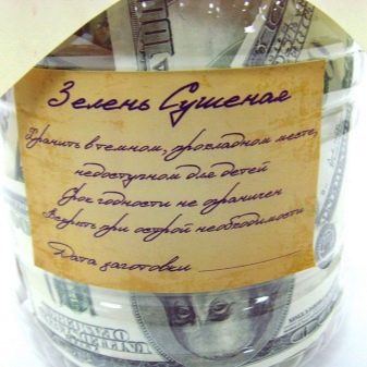 เงินถูกวางไว้ในขวดแก้วขนาดใหญ่ 3 ลิตรกลิ้งฝานี้ งานเลี้ยงวันเกิดมีไว้เพื่อให้ประหยัดในธนาคารที่น่าเชื่อถือที่สุด บนฝั่งของแท็กขนาดเล็กที่มีคำจารึก - "ผักใบเขียวแห้ง", "กะหล่ำดอก" จะถูกวางสาย พวกเขานำเงินไปไว้ในคำจารึกของดอกไม้ ไม่มีเด็กวันเกิดจะไม่ปฏิเสธของขวัญเช่นนี้