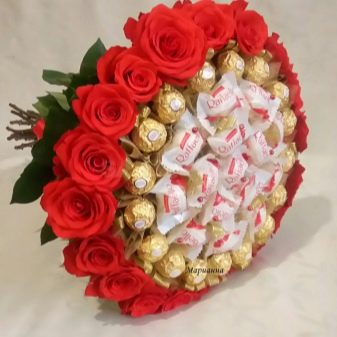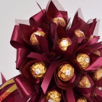 ช่อขนมจะดูดีบนโต๊ะวันหยุดสร้างบรรยากาศของความอบอุ่นและความผาสุกในห้อง สำหรับช่อเล็ก ๆ ที่เหมาะกับขนมเล็ก ๆ ในกระดาษห่อมันวาวสำหรับ "ดอกไม้" หนึ่งดอกพวกเขาต้องการ 5 ชิ้น