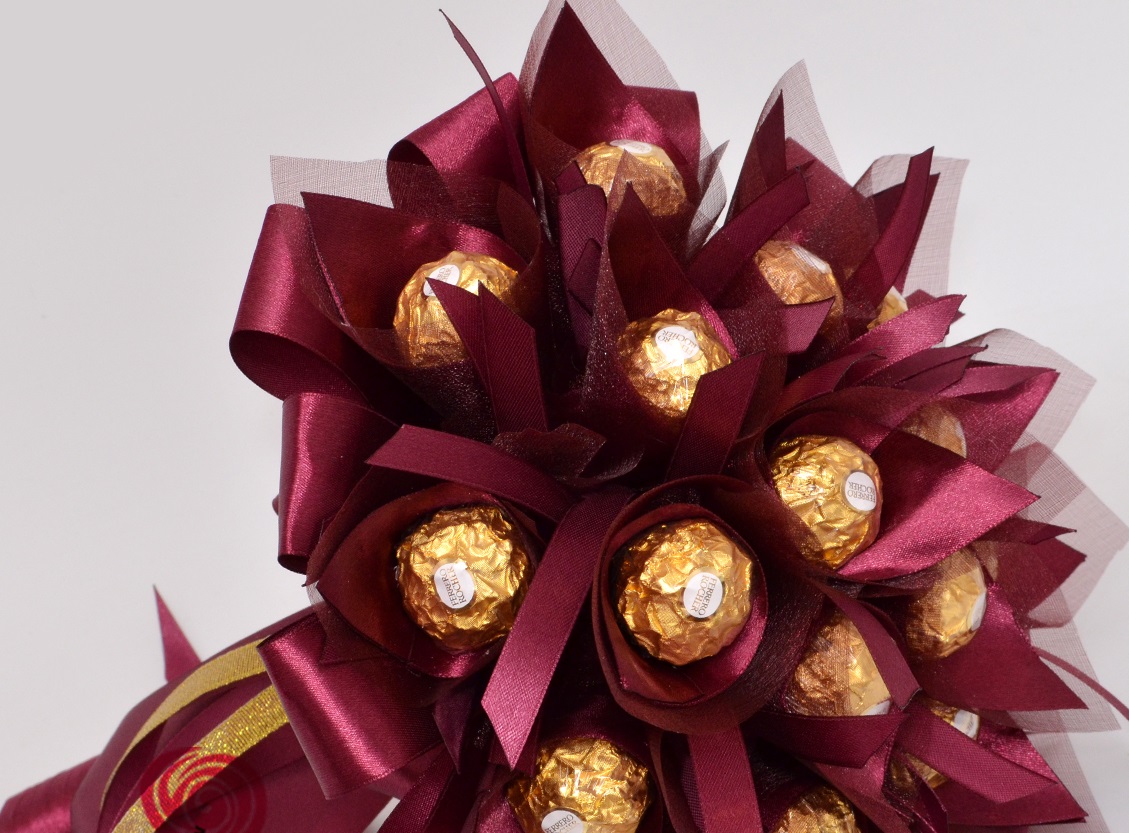 ช่อขนมวางอยู่ในแจกันซึ่งสามารถทำด้วยมือของคุณเอง