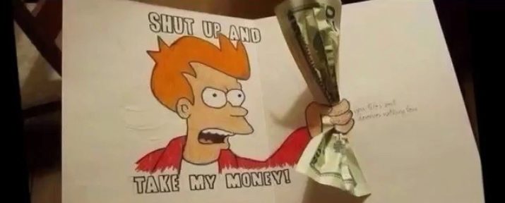 โดยปกติแล้ววีรบุรุษแห่งเหตุการณ์จะรู้สึกอับอายด้วยการรับซองจดหมายด้วยเงิน - ของขวัญชิ้นนี้สามารถถูกตีได้และนำเสนอเงินในลักษณะที่ล้อเล่น