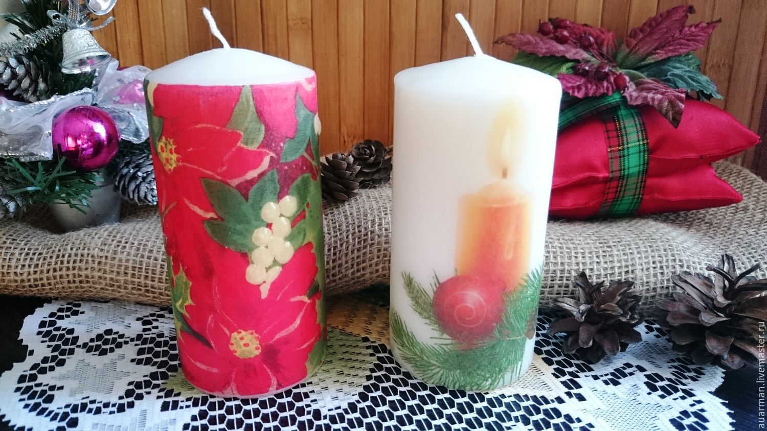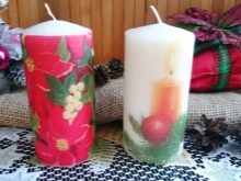 - ชุดเทียนพาราฟินงานรื่นเริงตกแต่งด้วยเทคนิค decoupage