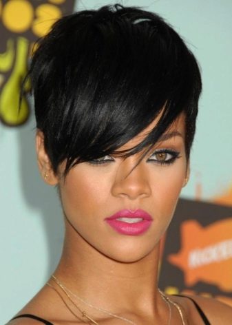 ในการหยิกสั้นและหายากจะมีทรงผมที่ยอดเยี่ยมควบคู่ไปกับการเรียบ หลังอาจจะกลายเป็นสำเนียงที่น่าดึงดูดและสดใสของผมโดยเฉพาะอย่างยิ่งหากไม่สามารถอวดความหนาแน่นเก๋ไก๋ สำหรับเส้นบางสไตลิสต์แนะนำให้เลือกปัง ragged หรืออสมมาตรที่ด้านข้าง ผลที่ได้คือการตัดสินใจที่มีสไตล์และเซ็กซี่มากที่สามารถทำให้ผู้หญิงดูน่าตื่นเต้น
