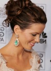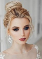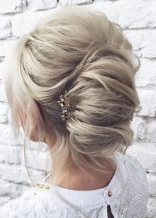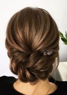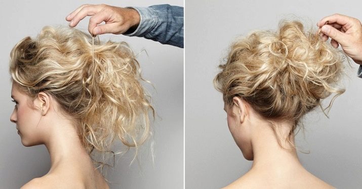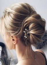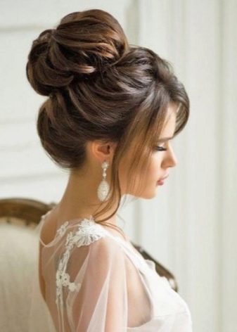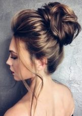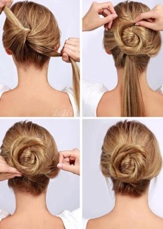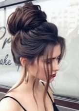 ตัวเลือกอันเขียวชอุ่มนี้เกี่ยวข้องกับการเตรียมผมเบื้องต้น - การสร้างลอน บิดเกลียวจะต้องเก็บรวบรวมในหางไม่ดึงพวกเขาตลอดทางผ่านเหงือก จากนั้นผมถูกพันรอบฐานและแก้ไข เทคนิคนี้จะช่วยในการสร้างปริมาณเพิ่มเติม