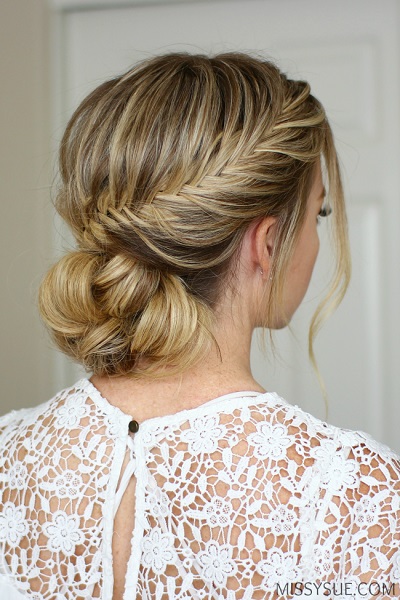 - หญิงสาว ทรงผมที่สมบูรณ์แบบที่คานทำจากด้านบนของเส้นผมเท่านั้นในขณะที่ด้านล่างยังคงหลวม ที่เกี่ยวข้องยังเป็นขนมปังเลอะเทอะผสมผสานอย่างลงตัวกับสไตล์ของแคชชวล